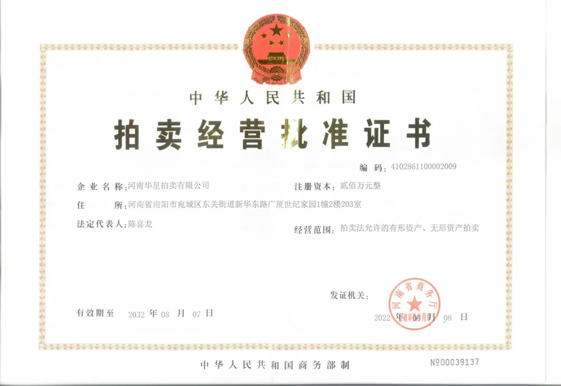 Copyright@2025-2026 河南華星拍賣有限公司 AllRights Reserved 版權(quán)所有. |